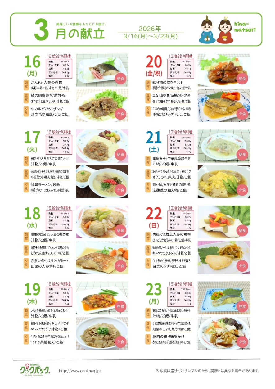 3拍子揃った献立で美味しく健康的に。