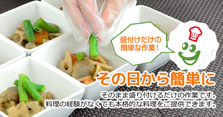 クックパックと再加熱機は空白の時間を埋めることが出来ます。さらに話題のニュークックチルにも対応!温かい食事を分刻みで提供できる保温機能付きで、ご利用者様にご好評いただいています。