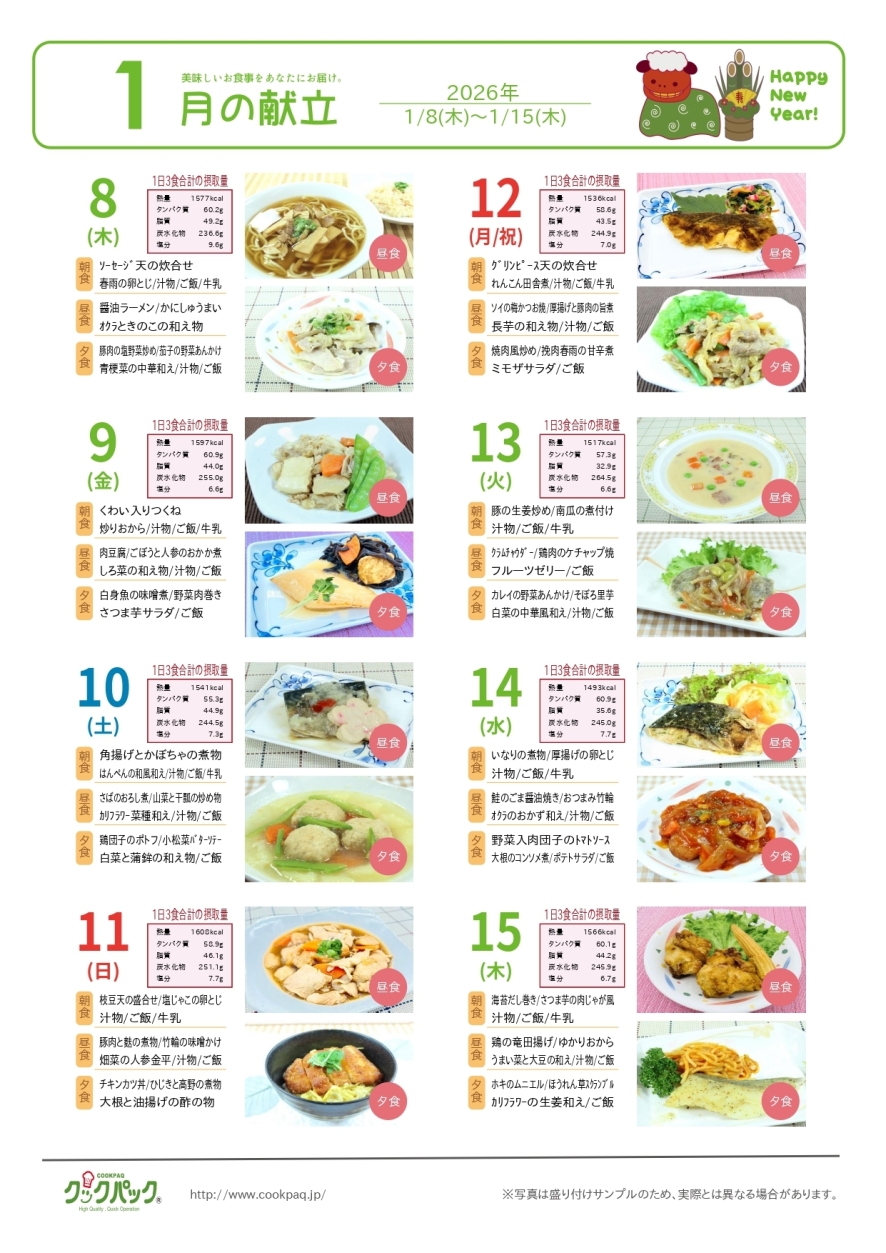 『塩分控えめ』『柔らかでうまい!』『多彩なメニュー!』 カレーや麺類、丼など、人気のある多彩なメニューは約2000種類以上!